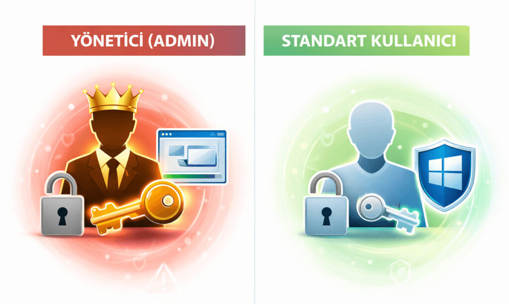 ⚠️ Gerçek deneyim: Günlük kullanımda yönetici hesabı kullanan bilgisayarlarda, tarayıcı kaynaklı zararlı yazılımların sisteme sızma oranı ciddi şekilde daha yüksektir.